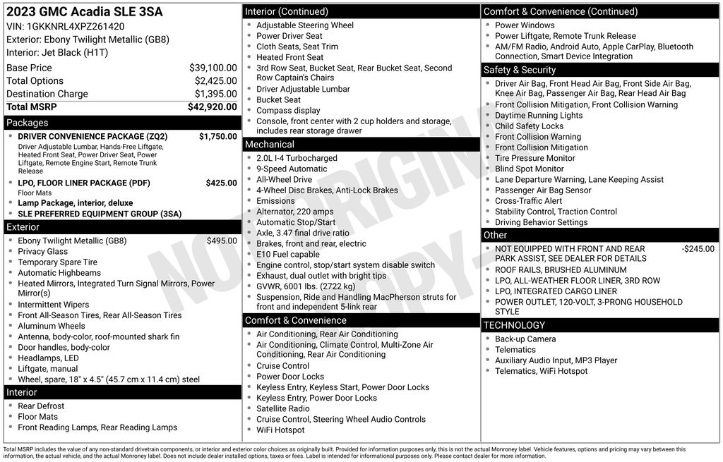 Whether you're looking for a capable family hauler, a versatile road-tripper, or a stylish daily commuter, the 2023 GMC Acadia SLE is a compelling choice that delivers exceptional value and a premium driving experience. We invite you to visit our showroom and experience this remarkable SUV for yourself. Let us demonstrate how the Acadia SLE can enhance your driving lifestyle and exceed your expectations.