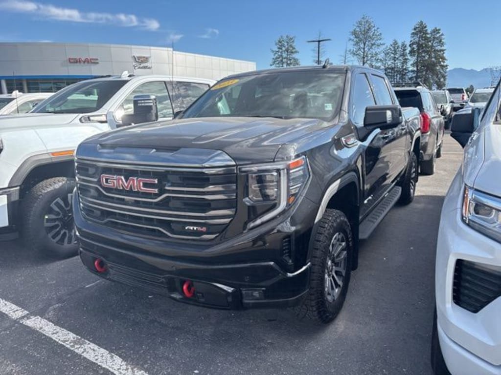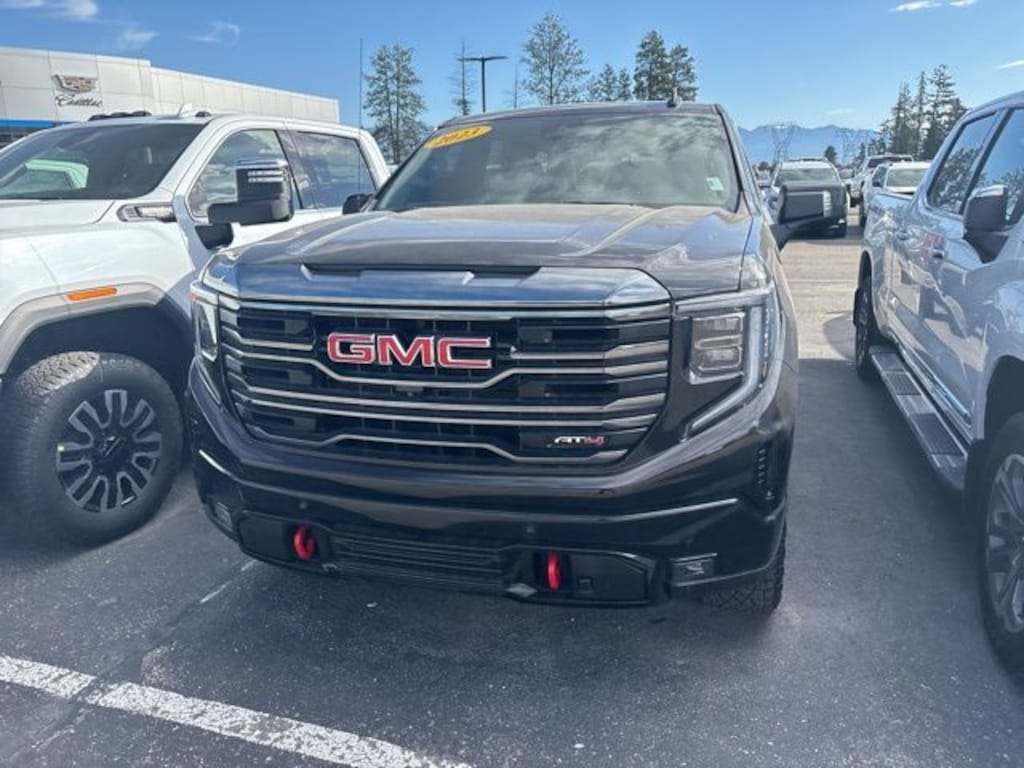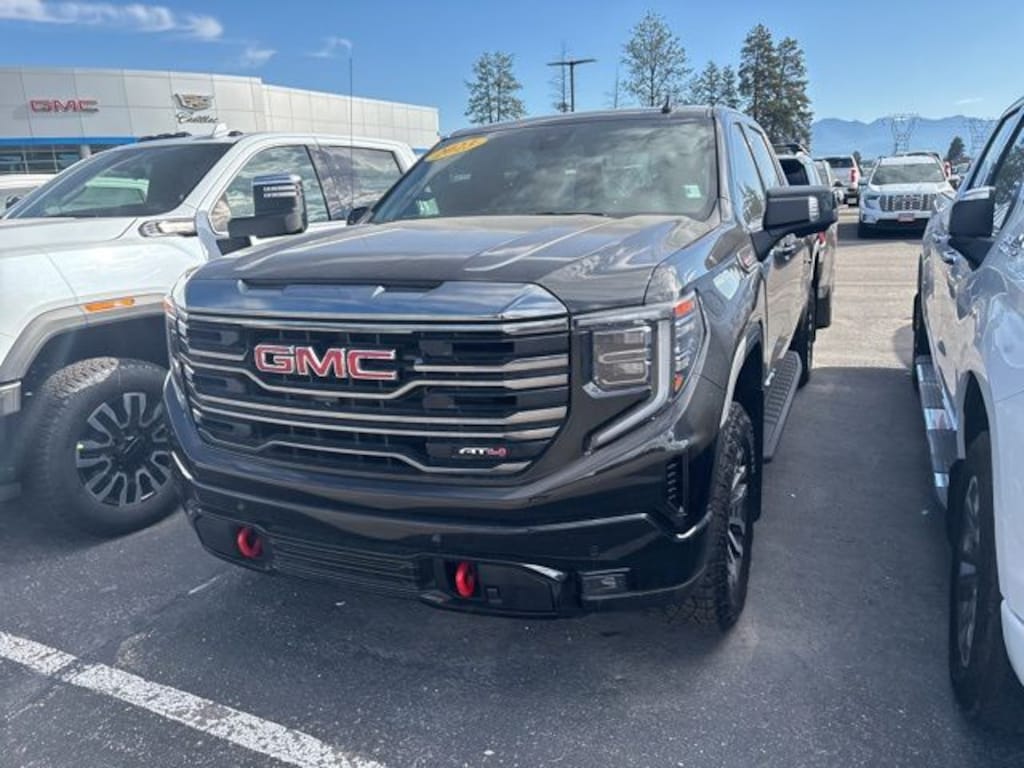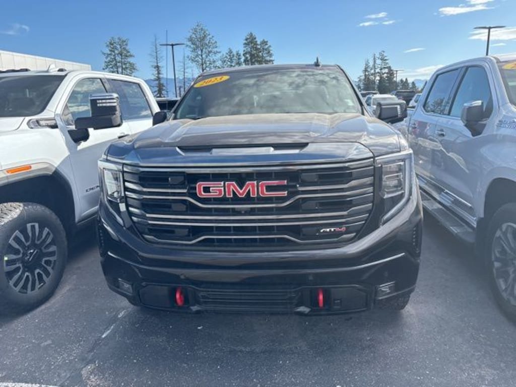 Our Accident-Free, Low Mile 2023 GMC Sierra 1500 AT4 Crew Cab 4X4 is a prime example of premium capability in Sterling Metallic! Motivated by a 6.2 Liter EcoTec3 V8 providing 420hp to a 10 Speed Automatic transmission that's well-engineered for taming trails. This Four Wheel Drive truck also features an off-road suspension, a 2-inch lift, a 2-speed transfer case, and hill-descent control for extreme adventures, plus it returns nearly 20mpg on the highway. A high-strength head-turner, our Sierra comes with LED lighting, fog lamps, red recovery hooks, skid plates, perimeter lighting, a spray-on bed liner, bold alloy wheels, and a GMC MultiPro tailgate.