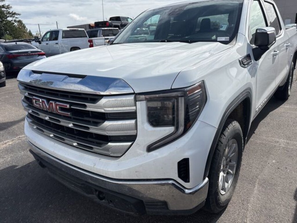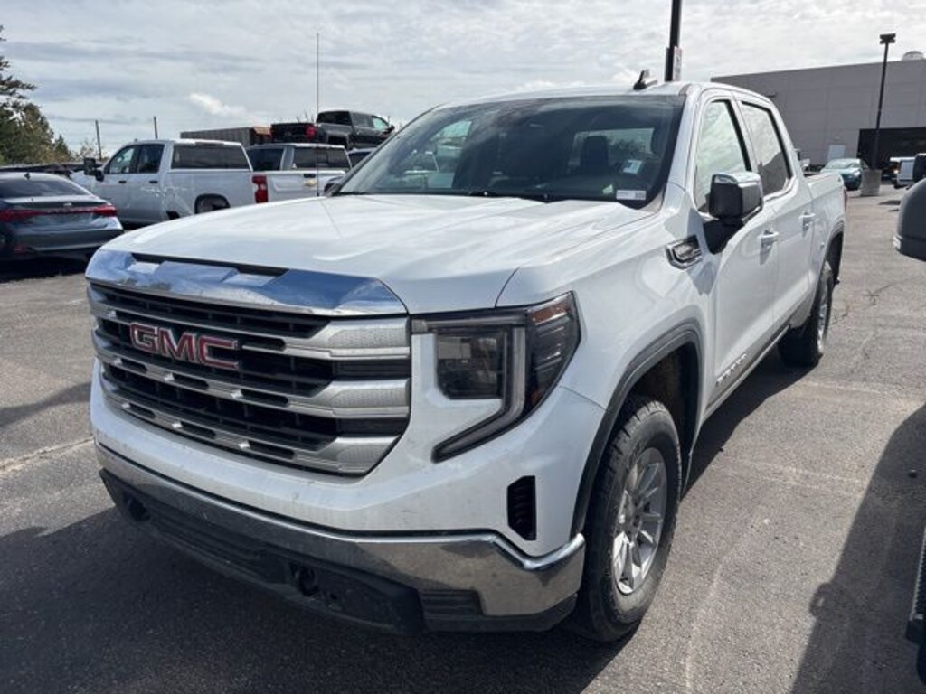 Every road leads to adventure in our 2023 GMC Sierra 1500 SLE Crew Cab 4X4 that is engineered for excellence in Summit White! Powered by a 5.3 Liter V8 offering 355hp to a 10 Speed Automatic transmission with a tow/haul mode to help with pulling. This Four Wheel Drive truck also has an auto-locking rear differential and a single-speed transfer case for tricky terrain, and it sees nearly 20mpg on the highway. Superior Sierra style cues include high-intensity LED headlamps, signature taillights, chrome mirror caps, cargo box lighting, black recovery hooks, alloy wheels, a MultiPro tailgate, and chrome bumpers with a rear CornerStep.