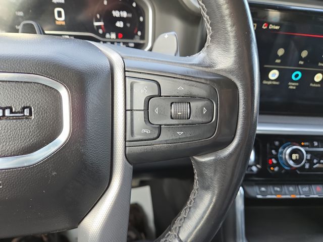 Our Denali cabin shows impressive attention to detail and luxurious heated/ventilated leather power front and heated rear seats, a heated-wrapped power steering wheel, dual-zone automatic climate control, remote start, keyless access/ignition, and eye-catching infotainment. Check out the 12.3-inch driver display, 13.4-inch touchscreen, WiFi compatibility, wireless charging, a full-color navigation system, Google Built-In, wireless Android Auto®/Apple CarPlay®, Bluetooth®, voice control, and Bose audio.