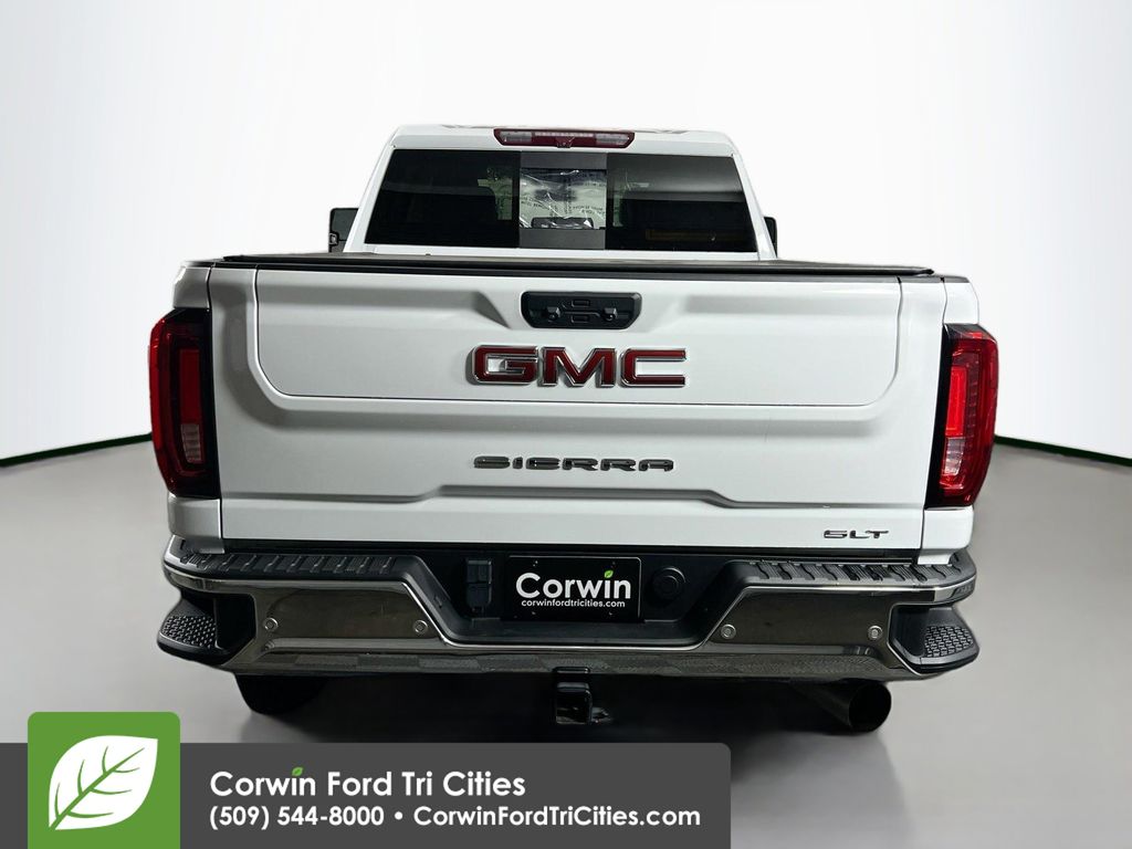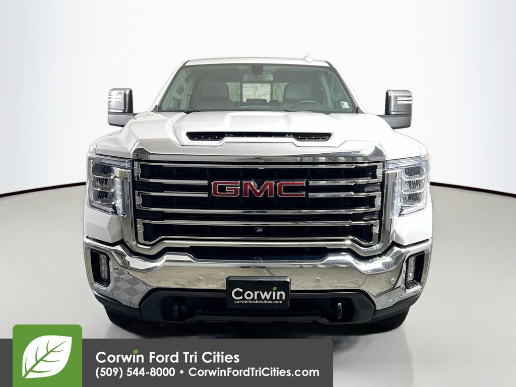 Our Diesel powered, Accident Free, Low Mileage 2023 GMC Sierra 3500HD SLT Crew Cab 4X4 helps you get more done and have more fun in Summit White! Featuring a TurboCharged 6.6 Liter Duramax Diesel V8 that provides 445hp and 910lb-ft of torque to a 10 Speed Allison Automatic transmission for Pro Grade capability. This Four Wheel Drive truck also masters the miles with digital variable steering and an auto-locking rear differential, making it easy to maneuver, and our Sierra 3500HD looks excellent as it goes. Exterior highlights include LED lighting, fog lamps, a high-function MultiPro tailgate, power trailering mirrors, front recovery hooks, bed steps, and alloy wheels.