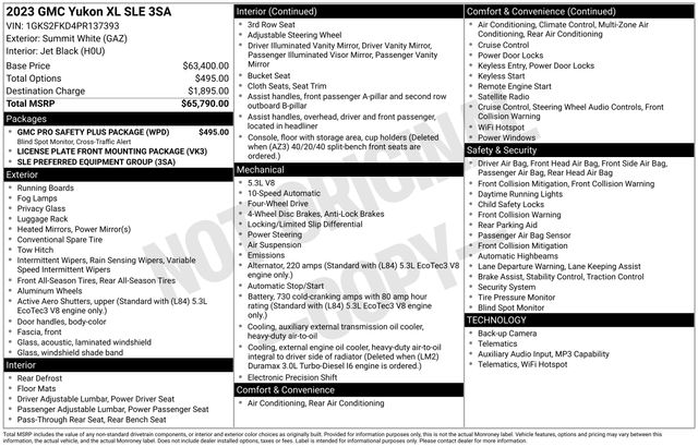2023 GMC Yukon XL SLE 4WD 10-Speed Automatic with Overdrive EcoTec3 5.3L V8 Summit White