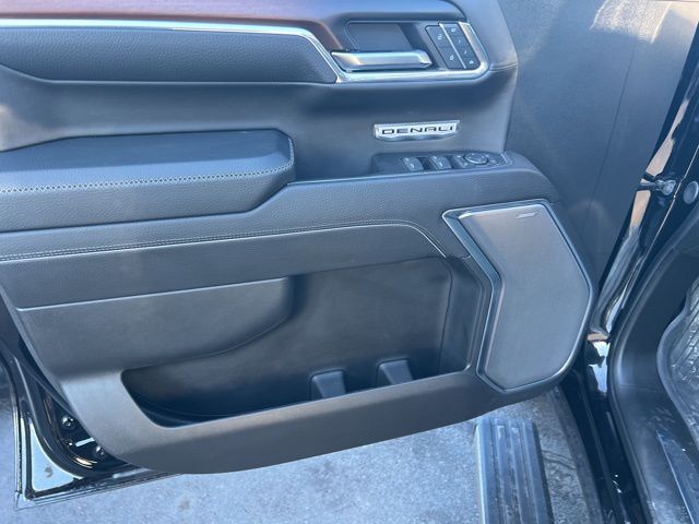 Our One Owner, Accident-Free, Low Mile 2024 GMC Sierra 1500 Denali Crew Cab 4X4 with the Technology Pack advances truck luxury in Onyx Black! Powered by a 6.2 Liter V8 generating 420hp for a 10 Speed Automatic transmission. A premium suspension with adaptive ride control helps you comfortably cruise from town to trail, and this Four Wheel Drive truck scores nearly 19mpg on the highway. Signature Sierra style comes into the picture with a distinctive grille, LED lighting, fog lamps, full-length chrome assist steps, bed lighting, a hitch receiver, a power sunroof, a body-color topper, bold 20-inch alloy wheels, a MultiPro tailgate, and a spray-on bedliner.