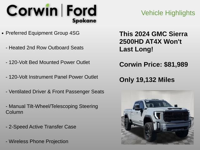 Whether you're tackling tough jobs or embarking on off-road adventures, the 2024 GMC Sierra 2500HD AT4X is the ultimate companion. Experience the uncompromising power, premium features, and exceptional capability that make this truck a true standout in its class.