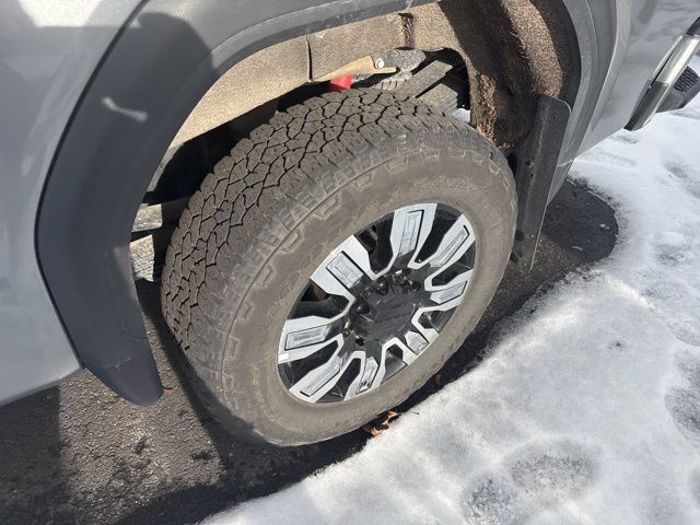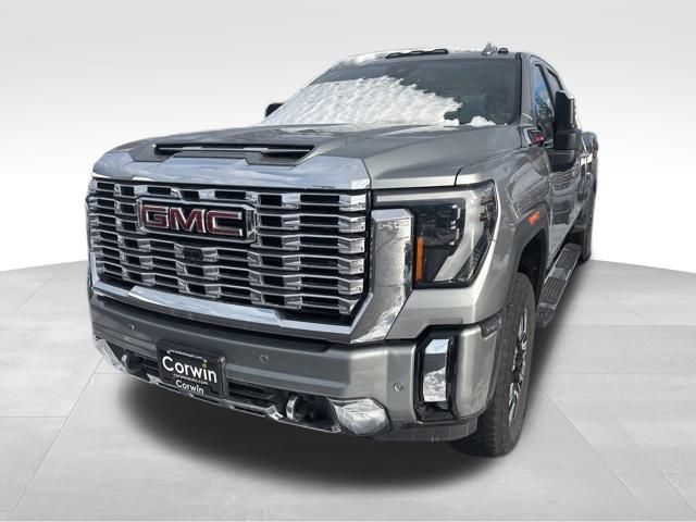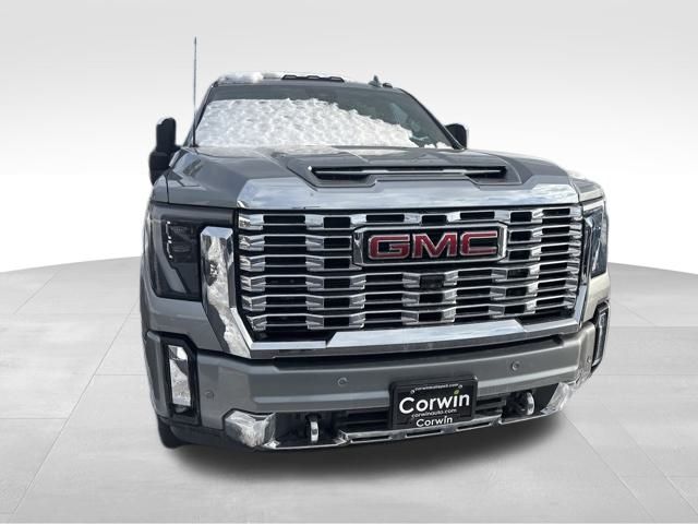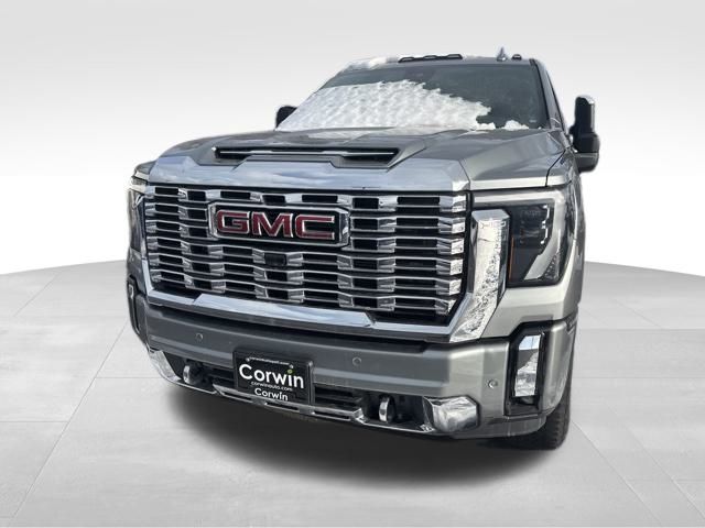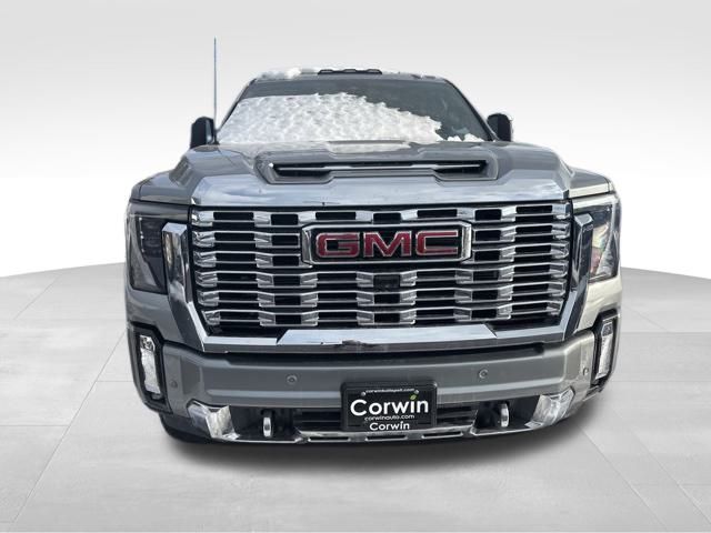 Our Diesel powered 2024 GMC Sierra 3500 Denali Crew Cab 4X4 with the Technology Pack is where incredible power and prestige come together in Sterling Metallic! Motivated by a TurboCharged 6.6 Liter DuraMax Diesel V8 supplying 470hp and 975lb-ft of torque to a 10 Speed Allison Automatic transmission. An off-road suspension is standard, so you don't have to stop where the pavement does, and this Four Wheel Drive truck features Digital Variable Steering for impressive maneuverability. Impressive style comes into the picture with our Sierra's exclusive grille, LED lighting, MultiPro tailgate, 20-inch wheels, power sunroof, spray-on bedliner, chrome assist steps, and LED roof marker lamps.