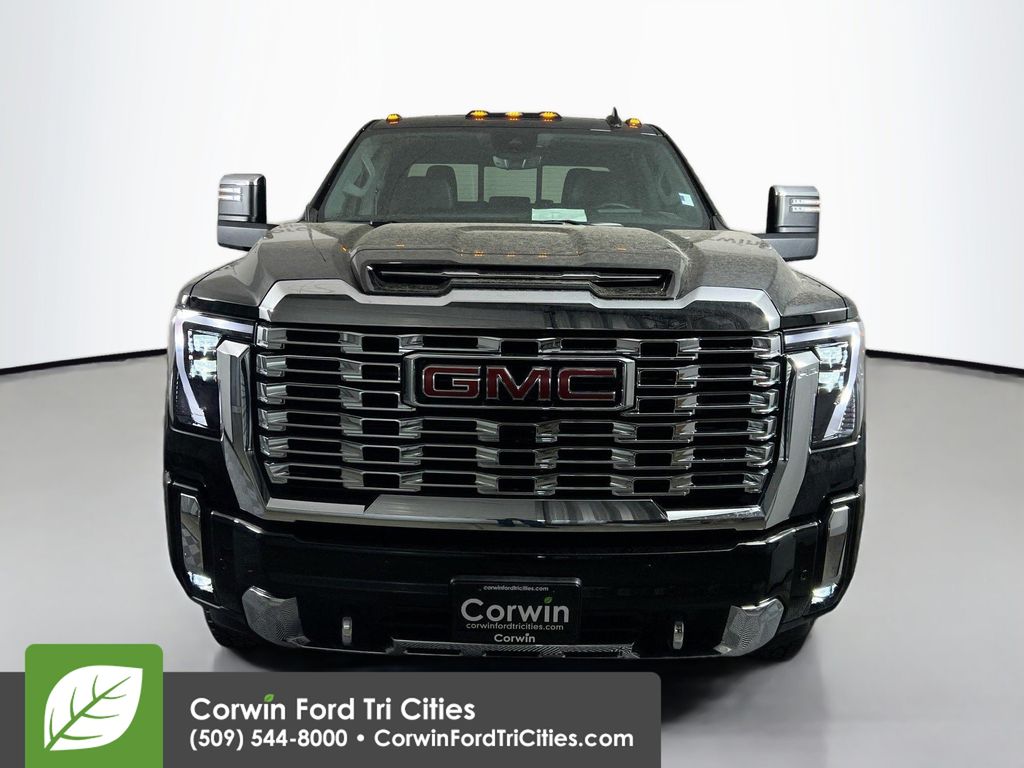 Our Diesel powered, Accident Free 2024 GMC Sierra 3500HD Denali Crew Cab 4X4 with the Reserve Pack is where incredible power and prestige come together in Onyx Black! Motivated by a TurboCharged 6.6 Liter DuraMax Diesel V8 supplying 470hp and 975lb-ft of torque to a 10 Speed Allison Automatic transmission. An off-road suspension is standard, so you don't have to stop where the pavement does, and this Four Wheel Drive truck features Digital Variable Steering for impressive maneuverability. Impressive style comes into the picture with our Sierra's exclusive grille, LED lighting, MultiPro tailgate, 20-inch wheels, spray-on bedliner, chrome assist steps, and our Reserve Pack's power sunroof.