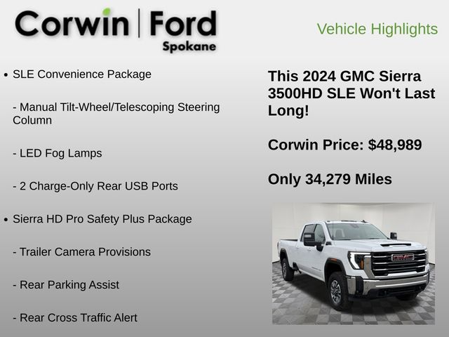 Combining rugged performance, advanced technology, and premium comfort, the 2024 GMC Sierra 3500HD SLE is the ultimate work truck. Experience the power and capability that this exceptional vehicle has to offer. Visit our showroom today and let us demonstrate how the Sierra 3500HD SLE can transform your driving experience.