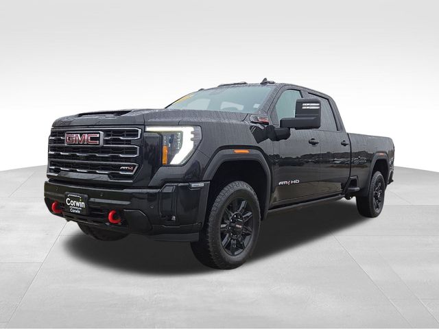 Our One Owner, Low Mile, Diesel driven 2025 GMC Sierra 3500 AT4 Crew Cab 4X4 with the Premium Plus Pack is where Pro Grade capability meets deluxe comfort in Onyx Black! Motivated by a TurboCharged 6.6 Liter DuraMax Diesel V8 offering 470hp and 975lb-ft of torque to a 10 Speed Allison Automatic transmission. This Four Wheel Drive truck also boasts an off-road suspension with hill-descent control and a 2-speed transfer to help handle difficult terrain with calm confidence. Advanced style and functionality come with our Sierra's LED lighting, protective skid plates, MultiPro tailgate, 20-inch alloy wheels, spray-on bedliner, and Premium Plus upgrades like a power sunroof and high-clearance assist steps.