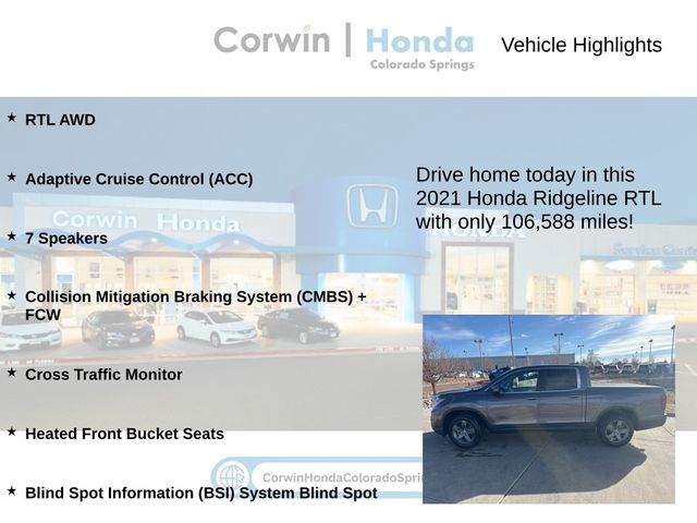 Priced below KBB Fair Purchase Price! 2021 Modern Steel Metallic Honda Ridgeline RTL