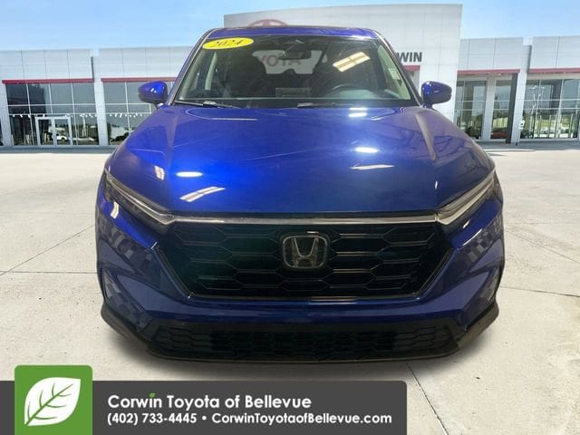 Designed with you in mind, our One Owner 2024 Honda CR-V EX AWD has what you want in Canyon River Blue Metallic! Powered by a TurboCharged 1.5 Liter 4 Cylinder offering 190hp to a CVT for unfettered adventure potential. Responsive handling helps this All Wheel Drive SUV maneuver through your world without missing a beat, and it can see nearly 32mpg on the highway. Tough-looking and tenacious, our CR-V shows off a power sunroof, bold grille, LED lighting, a sporty roofline spoiler, alloy wheels, and heated power mirrors with built-in turn signals.