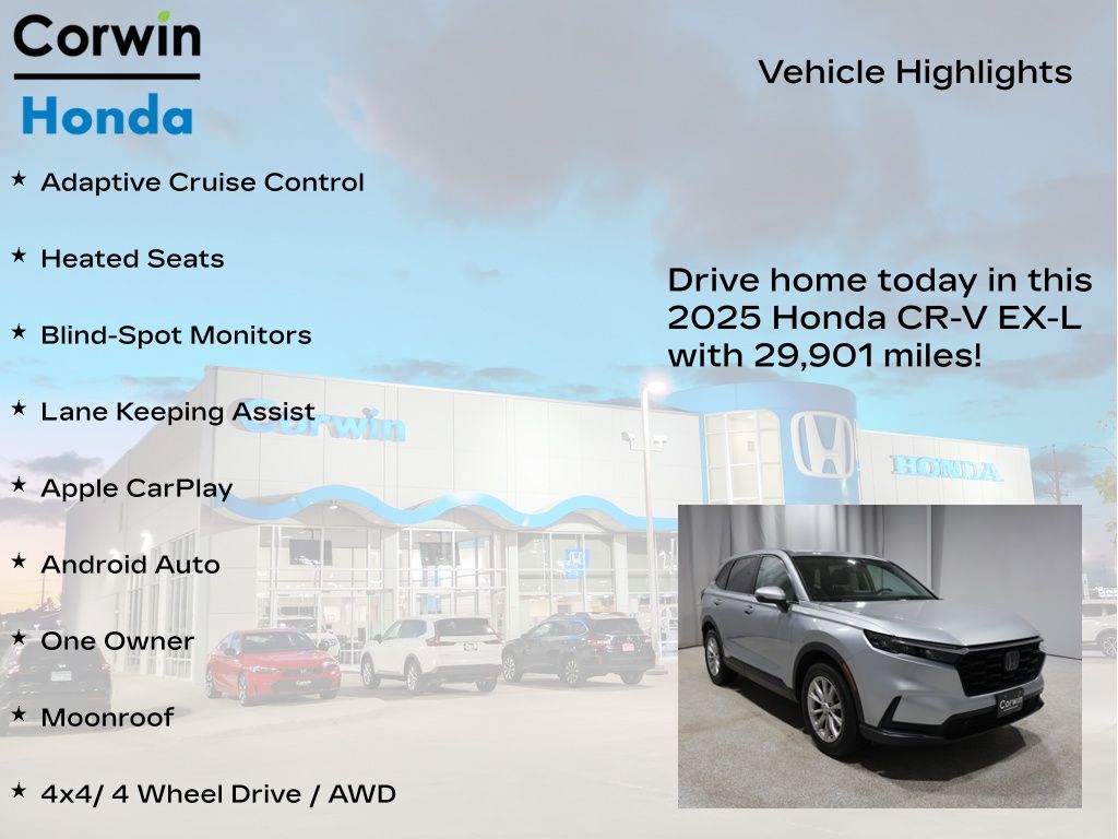 Whether you're looking for a versatile family hauler, a capable all-weather companion, or a premium driving experience, this 2025 Honda CR-V EX-L is the perfect choice. Schedule a test drive today and discover the exceptional value and quality that this SUV has to offer.