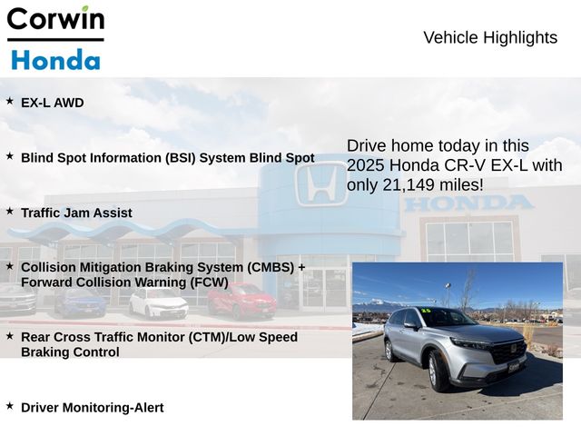 Priced below KBB Fair Purchase Price! 2025 Gray Honda CR-V EX-L