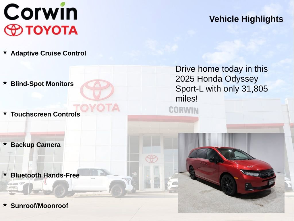 Experience the perfect blend of style, functionality, and cutting-edge technology in the 2025 Honda Odyssey Sport-L. Visit our showroom today and let our knowledgeable team guide you through all the features and benefits this exceptional minivan has to offer.