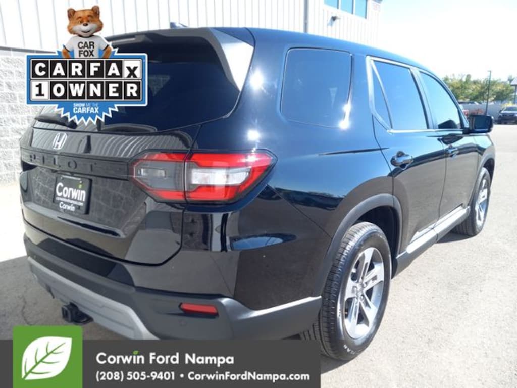 Our Accident Free, One Owner 2025 Honda Pilot EX-L AWD is crafted to create a dominant impression in Crystal Black Pearl! Motivated by a 3.5 Liter V6 delivering 285hp to a paddle-shifted 10 Speed Automatic transmission with Snow, Tow, Trail, Sand, and Sport modes. This All Wheel Drive SUV also has trail-friendly handling and takes on long road trips, returning nearly 25mpg on the highway. Our Pilot has a rugged look for turning heads, with deluxe details like LED lighting, fog lamps, a power liftgate, alloy wheels, and heated multifunction mirrors.