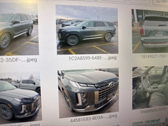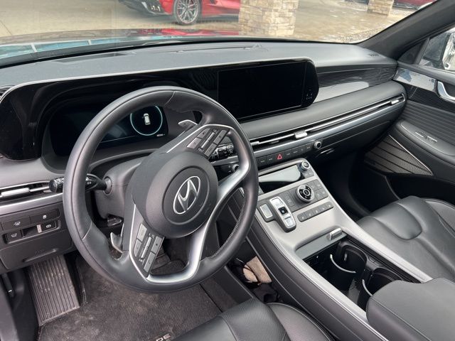 Our stunning One Owner 2023 Hyundai Palisade Calligraphy AWD in Steel Graphite has luxury and capability that families love! Motivated by a 3.8 Liter V6 generating 291hp to a paddle-shifted 8 Speed Automatic transmission with Drive Mode Select. An auto-leveling rear suspension is also standard, and this All Wheel Drive SUV returns nearly 25mpg on the highway. Our Hyundai Palisade has a premium presence, too, with LED lighting, a dual-pane sunroof, a satin chrome grille, matching skid plates, silver roof rails, a hands-free liftgate, and exclusive 20-inch alloy wheels.
