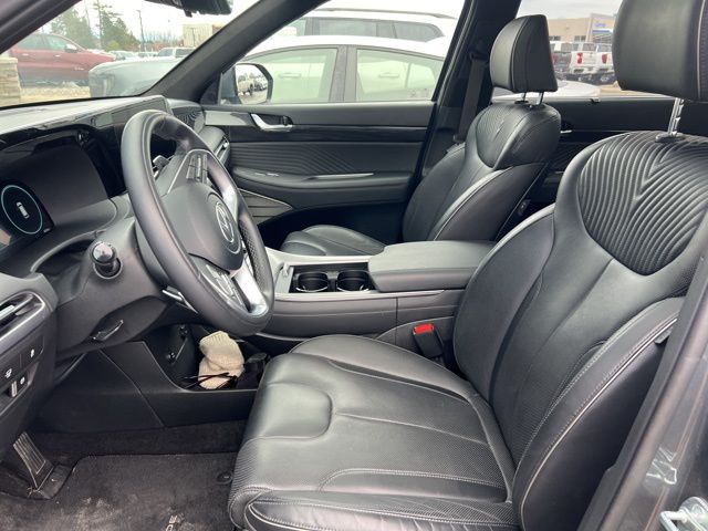 Elegant and sophisticated, our Calligraphy cabin pampers you with heated/ventilated Nappa leather front seats and second-row captain's chairs, massage functionality for the driver, a heated power-folding third row, a heated leather steering wheel, dual-zone automatic climate control, and quilted leather door panels. Superior connectivity awaits with a 12.3-inch driver display and a 12.3-inch touchscreen supporting voice control, Android Auto®/Apple CarPlay®, Bluetooth®, WiFi compatibility, wireless charging, Harman Kardon audio, and Onboard Navigation & Traffic Flow.