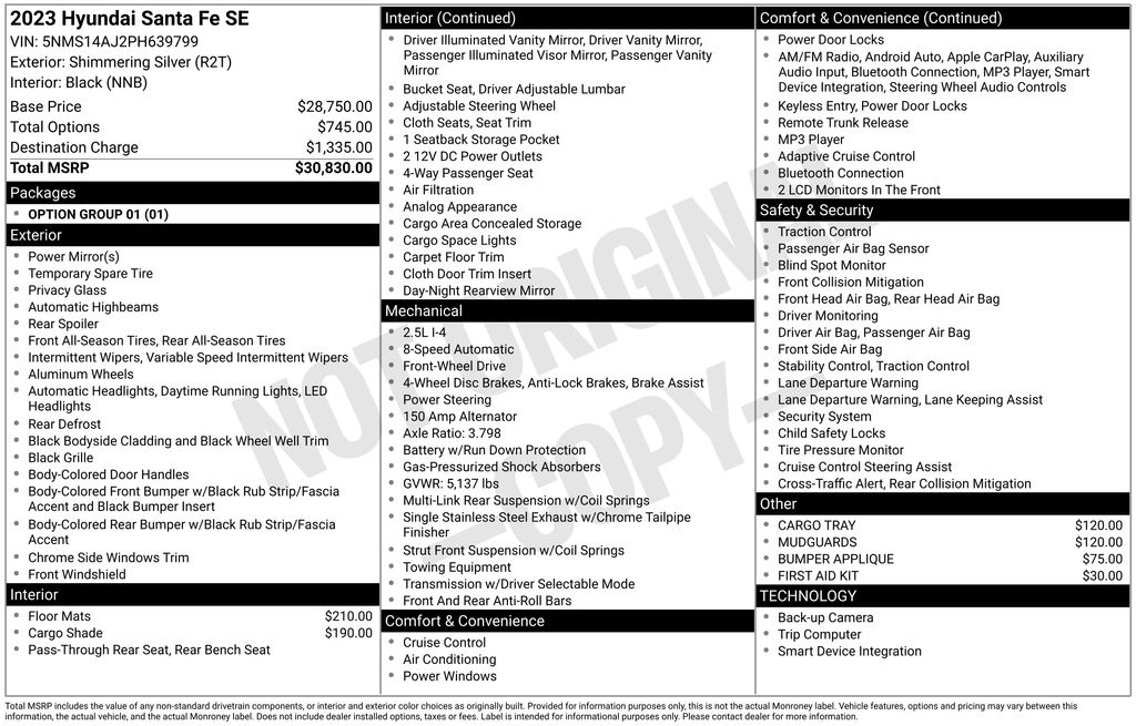 This 2023 Hyundai Santa Fe SE is a true standout in its class, offering a compelling blend of style, performance, and advanced features. With a list price of $25,069, it represents exceptional value in the SUV market. We invite you to experience the Santa Fe for yourself and discover the difference it can make in your daily driving.