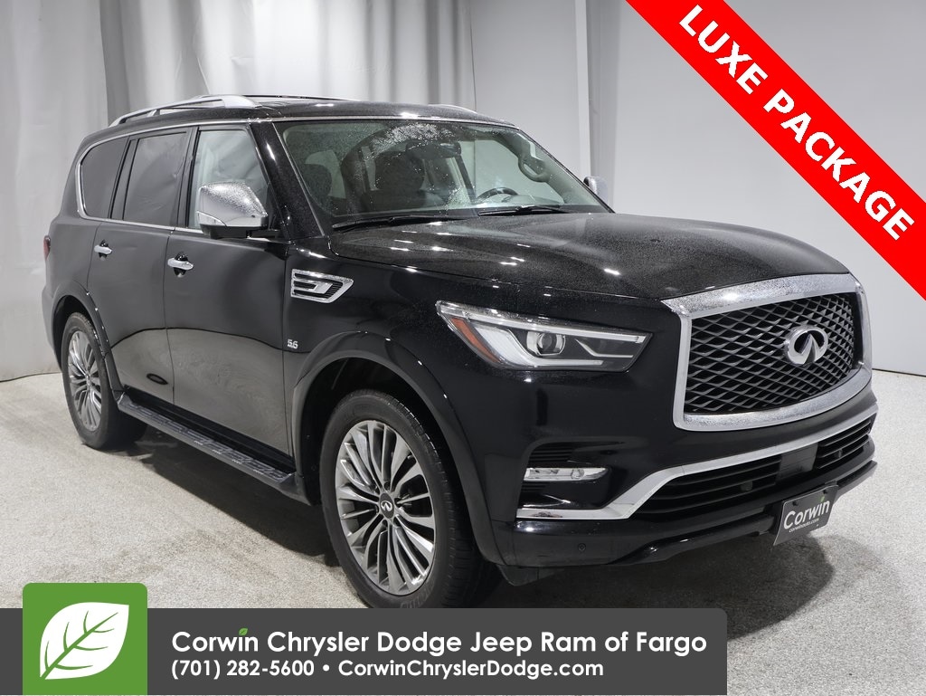 COME FALL INTO OUR GREAT OCTOBER DEALS GOING ON ALL MONTH AT CORWIN CHRYSLER DODGE JEEP RAM OF FARGO!!OFFERING GREAT SAVINGS ON OUR PRE-OWNED VEHICLES AVAILABLE!!WE HAVE ONE OF THE LARGEST SELECTIONS OF INVENTORIES IN OUR AREA AT ONE LOCATION!! New Price! Priced below KBB Fair Purchase Price! Black Obsidian 2019 INFINITI QX80 LUXE 4D Sport Utility 4WD 5.6L V8 CARFAX One-Owner.