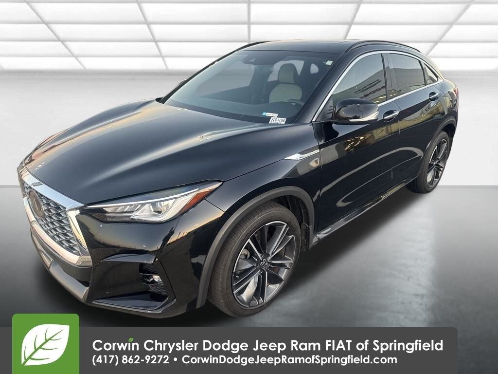 Recent Arrival! Corwin Chrysler Dodge Jeep Ram Fiat is pleased to offer this. INFINITI QX55 that is well equipped and includes these key features and benefits, Lane Keeping Assist, Touchscreen Controls, Backup Camera, Keyless Access with Push Button Start, Automatic Headlights, Voice Recognition, Bluetooth Hands-Free, 4x4 / 4 Wheel Drive / AWD, iPhone Integration, Alloy wheels, Black Film Rear Bumper Protector, Cargo Net, Cargo Package, Reversible Cargo Mat, Wheels: 20" x 8.5" Machine Finished Aluminum Alloy.