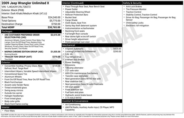 2009 Jeep Wrangler Unlimited X 4WD 3.8L V6 SMPI Black Clearcoat