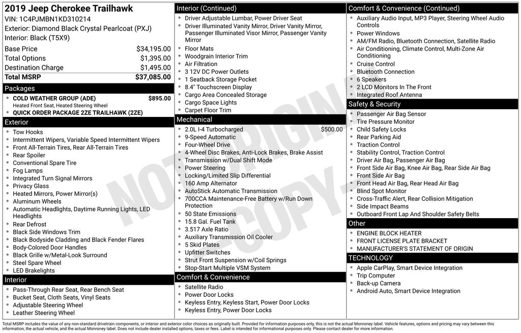 Discover the ultimate off-road companion in this meticulously maintained 2019 Jeep Cherokee Trailhawk. With its powerful 2.0L I4 DOHC engine, 9-speed automatic transmission, and 4WD capabilities, this rugged SUV is ready to tackle any terrain with confidence.