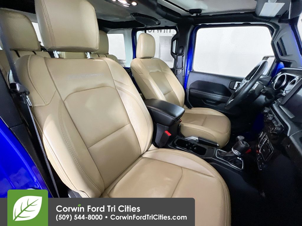 Our Accident Free, Low Mileage 2019 Jeep Wrangler Unlimited Rubicon 4 Door 4X4 with LED Lighting, the Cold Weather Group, and the Premium Audio Group is brought to you in Ocean Blue Metallic and offers maximum fun! Powered by a 3.6 Liter Pentastar V6 that produces 285hp tethered to a robust 8 Speed Automatic transmission for great capability on the road or off. This Four Wheel Drive SUV boasts a Rock-Trac transfer case, Tru-Lok differentials, and Dana axles for trail-rated performance, and it returns nearly 23mpg on the highway. Showcasing iconic design, our Wrangler Unlimited commands any terrain with packaged full LED lighting, a signature seven-slot grille, fog lamps, heavy-duty rock rails, a body color hard top, and aggressive body styling!