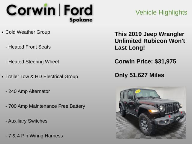 2019 Jeep Wrangler Unlimited Rubicon 4WD 3.6L V6 24V VVT Black Clearcoat