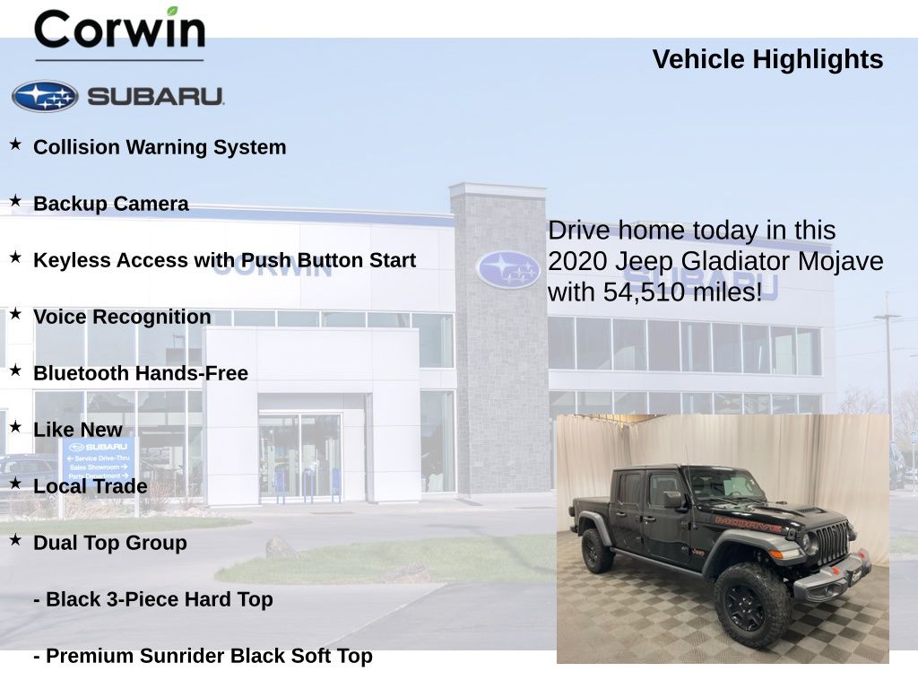 Discover the ultimate off-road companion with this stunning 2020 Jeep Gladiator Mojave. This rugged and capable vehicle is the perfect blend of power, versatility, and style, making it the ideal choice for those who crave adventure and demand the best.