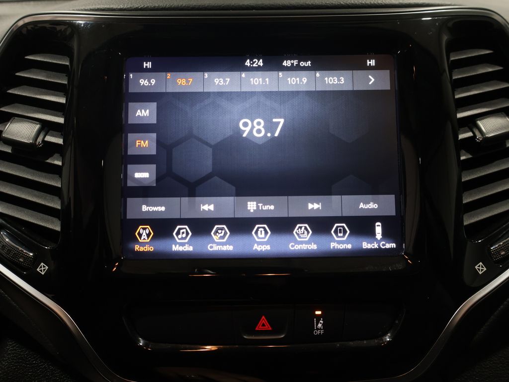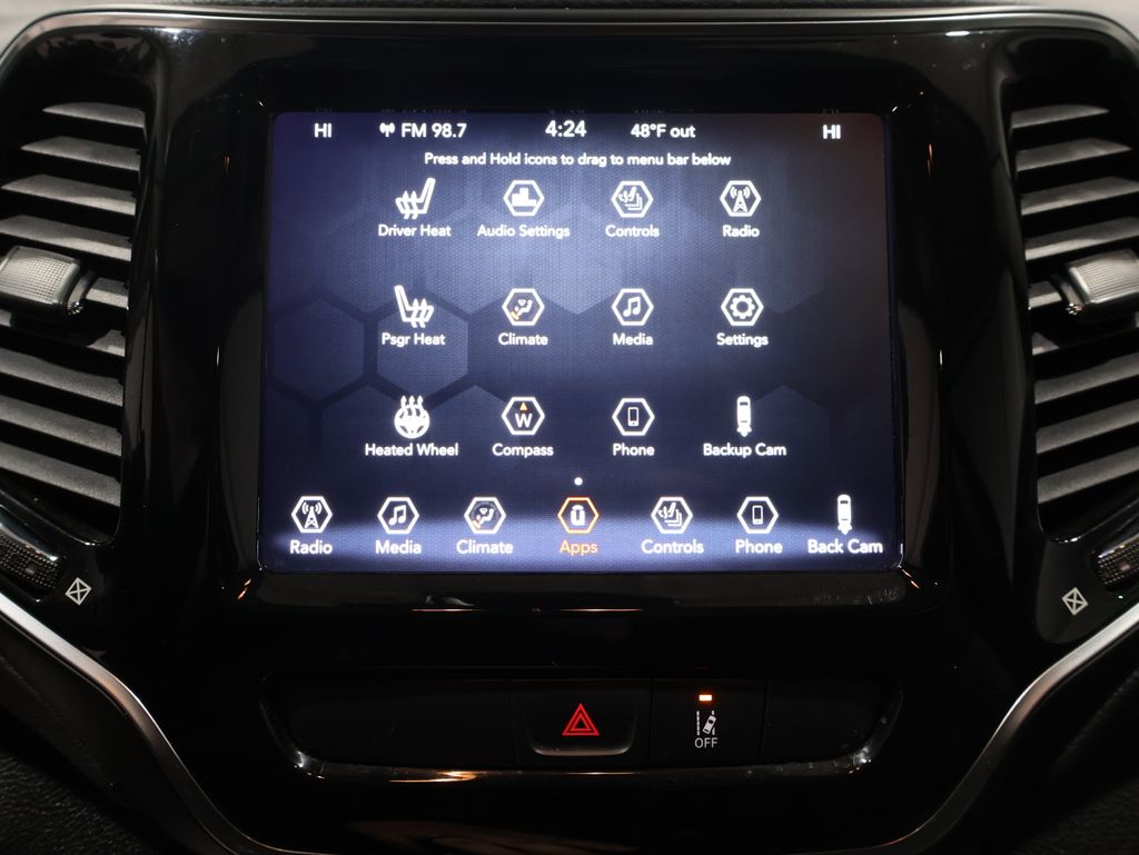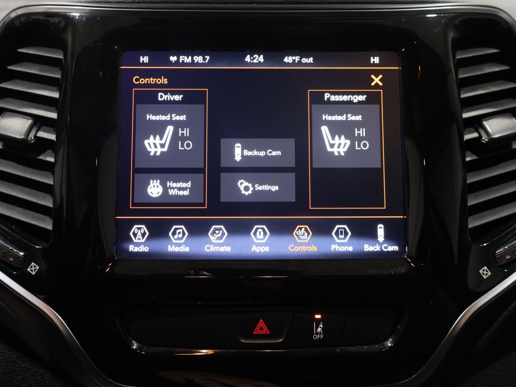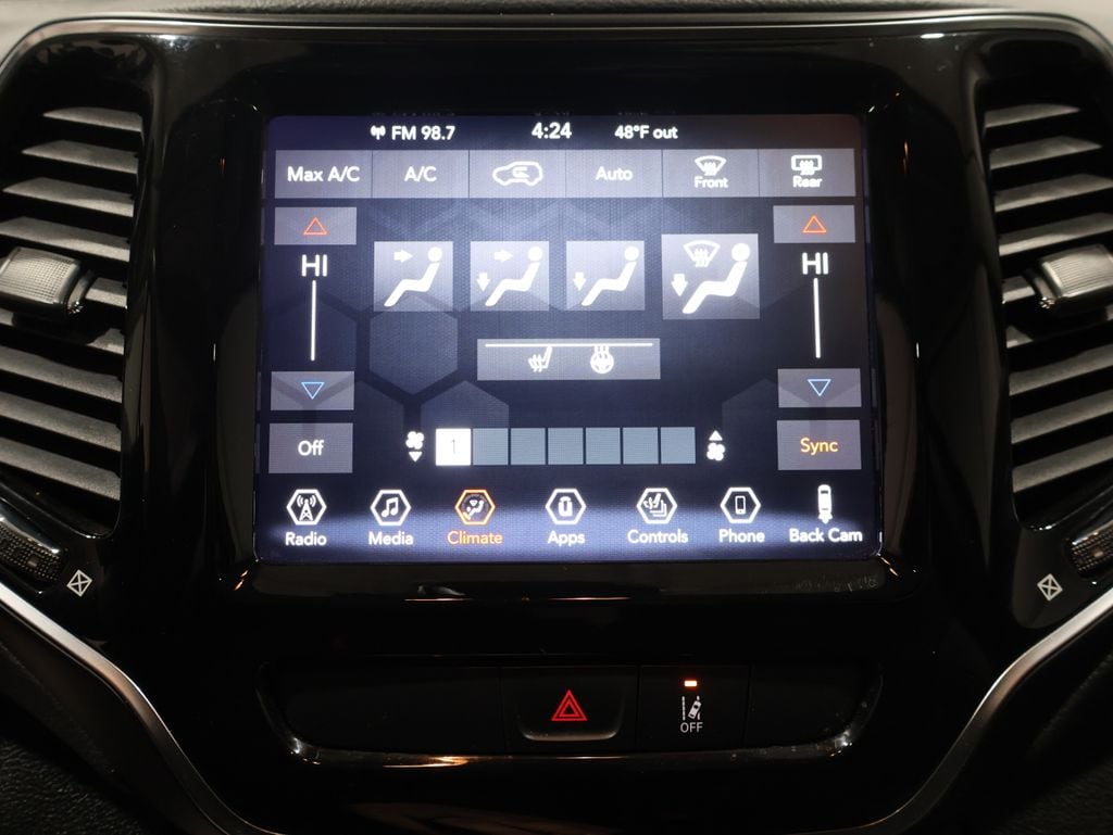 This Jeep Cherokee is well equipped and includes these key features and benefits, Heated Seats, Touchscreen Controls, Backup Camera, Automatic Headlights, Bluetooth Handsfree, AWD / 4x4 / Four Wheel, Heated front seats, ParkView Rear Back-Up Camera, Power windows, Quick Order Package 26G, Steering wheel mounted audio controls. 19/27 City/Highway MPG