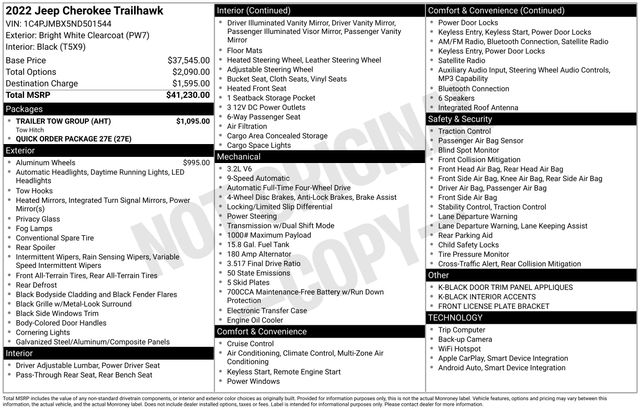 Elevate your driving experience with the 2022 Jeep Cherokee Trailhawk. This rugged SUV combines exceptional off-road capabilities with a host of premium features, making it the ultimate choice for those who seek a blend of performance, comfort, and style. Visit our showroom today and discover how the Trailhawk can transform your driving experience.