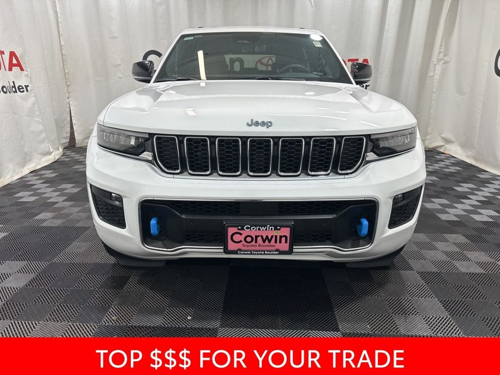 Our One Owner, Accident Free 2022 Jeep Grand Cherokee 4xe Overland 4X4 with the Luxury Tech IV Pack is ready to go over almost anything in Bright White! Motivated by a TurboCharged 2.0 Liter 4 Cylinder and Dual Electric Motors that supply a combined 375hp to an 8 Speed Automatic transmission. This Four Wheel Drive SUV is fearless off-road, with a Quadra-Drive 4WD system and a Quadra-Lift air suspension, and it scores nearly 23mpg on the highway using gasoline. Using electricity, our plug-in hybrid gets nearly 26miles of range on a single charge. Charged-up design features for our Grand Cherokee include LED lighting, fog lamps, a dual-pane sunroof, bold body cladding, a hands-free liftgate, and 20-inch alloy wheels.