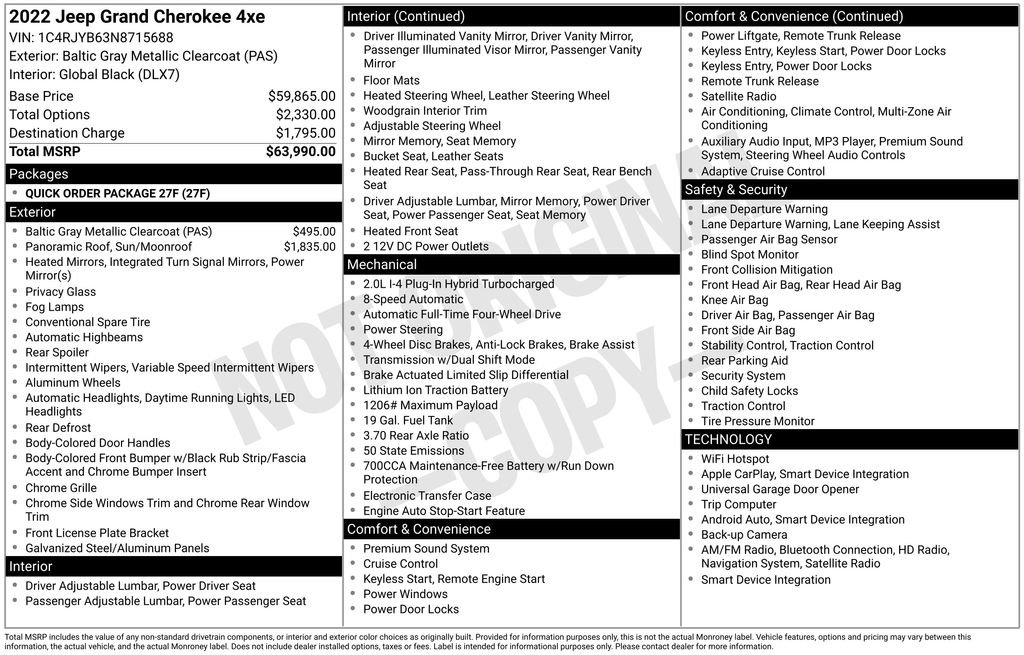 Discover the perfect blend of power, efficiency, and technology in the 2022 Jeep Grand Cherokee 4xe. This exceptional SUV is ready to elevate your driving experience and exceed your expectations. We invite you to visit our showroom and experience the Jeep Grand Cherokee 4xe for yourself.