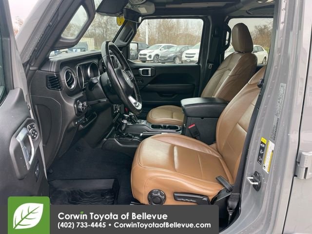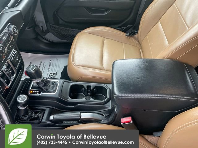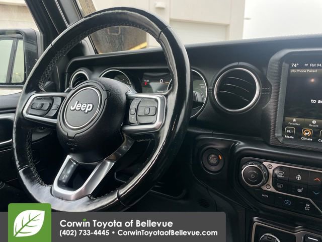Comfortable and commanding, our Sahara cabin comes with heated leather seats, a heated leather-wrapped steering wheel, automatic temperature control, cruise control, 12V/115V power outlets, keyless entry/ignition, a battery-level monitor, and clever cargo solutions. There's intelligent Uconnect® technology, too, like an 8.4-inch touchscreen, Off-Road Pages, full-color navigation, voice command, WiFi compatibility, Apple CarPlay®/Android Auto®, Bluetooth®, and an Alpine sound system.