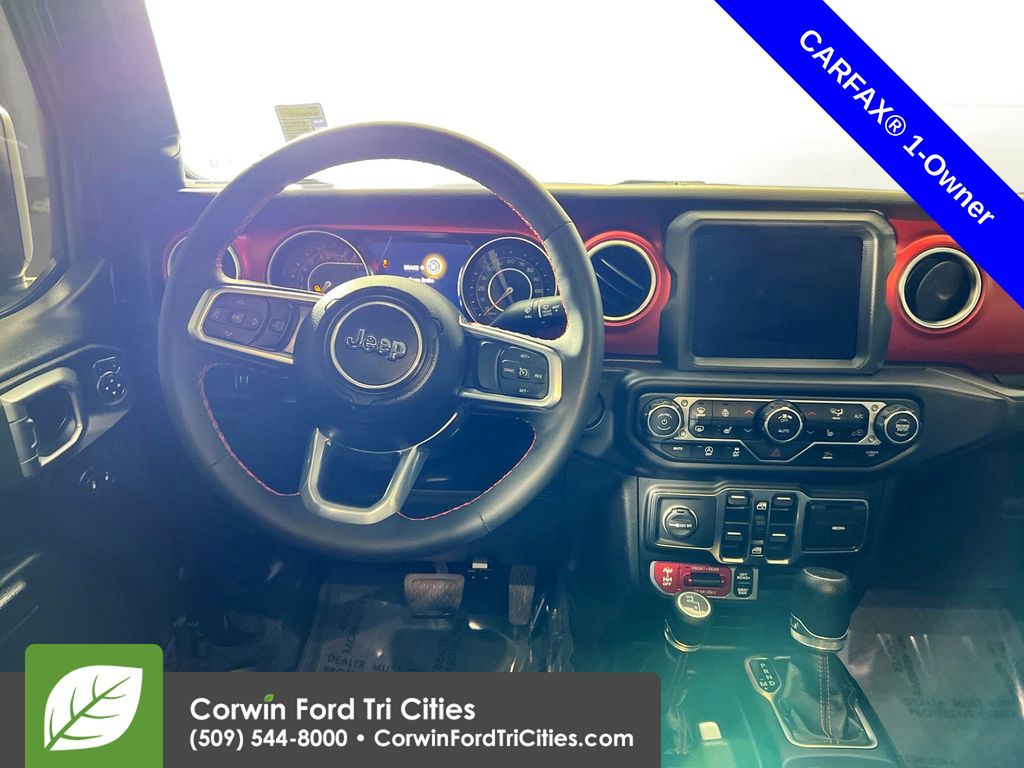 It's easy to enjoy your next challenge in our Rubicon cabin, which treats you to supportive heated cloth front seats, a heated premium-wrapped steering wheel, automatic temperature control, cruise control, keyless entry/ignition, and a Uconnect® infotainment system. That makes staying connected a breeze with an 8.4-inch touchscreen, full-color navigation, voice command, Android Auto®/Apple CarPlay®, Bluetooth®, and an Alpine audio system.