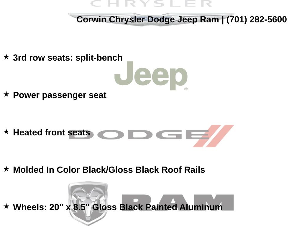 EMBRACE THE SHORTEST MONTH OF THE YEAR WITH CORWIN CHRYSLER DODGE JEEP RAM OF FARGO! WE HAVE SAVINGS ON ALL OF OUR PRE-OWNED VEHICLES AVAILABLE!! WE HAVE ONE OF THE LARGEST SELECTIONS OF INVENTORIES IN OUR AREA AT ONE SINGLE LOCATION!! Recent Arrival! Bright White Clearcoat 2023 Jeep Grand Cherokee L Limited FACTORY CERTIFIED 4D Sport Utility 4WD 3.6L V6 24V VVT Certified. CARFAX One-Owner.