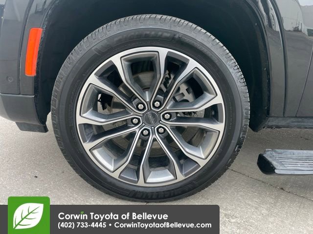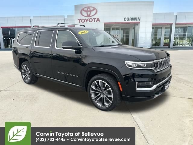 Our Accident Free, One Owner 2023 Jeep Grand Wagoneer L Series III 4X4 with Rear Seat Entertainment and the Heavy Duty Trailer Tow Package is engineered to inspire ambitious owners to go farther in Diamond Black Crystal Pearl Coat! Motivated by a Twin-TurboCharged 3.0 Liter Hurricane 6 Cylinder supplying 510hp to an 8 Speed Automatic transmission. A Quadra-Lift air suspension and front/rear differentials unlock trail-tested off-road performance, and this Four Wheel Drive extended-length SUV scores nearly 20mpg on the highway. A tri-pane sunroof, LED lighting, power running boards, a hands-free liftgate, roof rails, crossbars, and distinctive 22-inch wheels deliver dynamic good looks.