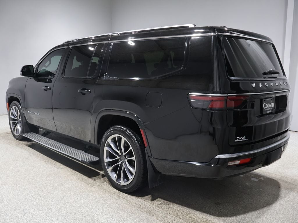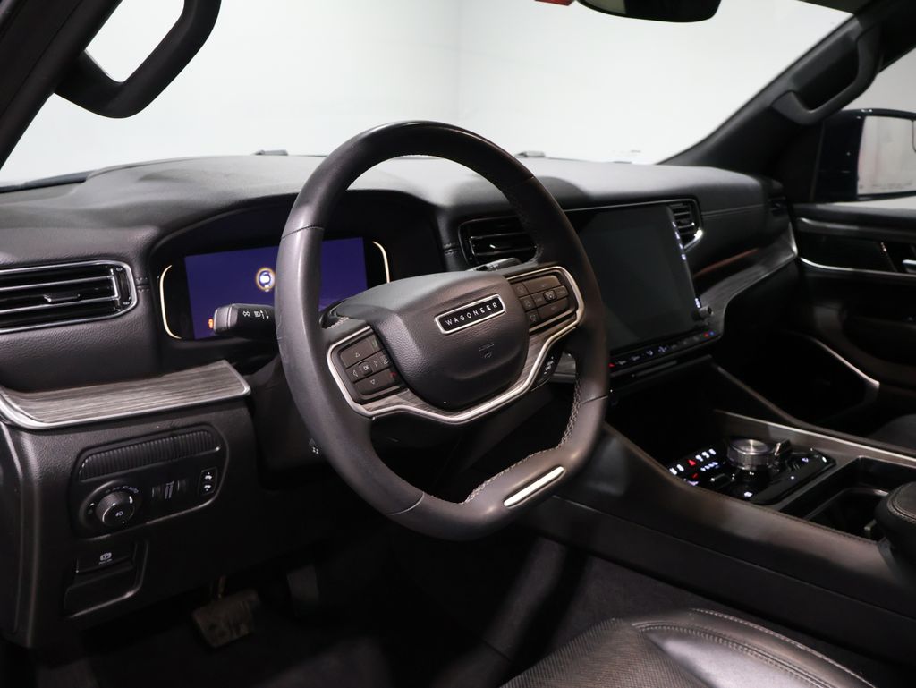 This Jeep Wagoneer L is well equipped and includes these key features and benefits, Heated and Cooled Seats, Navigation System, Touchscreen Controls, Backup Camera, Automatic Headlights, Bluetooth Handsfree, Sunroof/Moonroof, AWD / 4x4 / Four Wheel, 19 Speaker McIntosh Audio System, 2nd Row Manual Window Shades, 3 Panel Sunroof, 3rd row seats: bench, 7-Passenger Seating, Adjustable Roof Rail Crossbars, Convenience Group I, Drowsy Driver Detection, Exterior Parking Camera Rear, Flexible Seating Group, Floor Console w/Cupholder, Fully automatic headlights, Heads-Up Display, Heated front seats, Heated rear seats, Intersection Collision Assist System, Luxury Front & Rear Floor Mats, Navigation System, P&P Park & Unpark Assist w/Stop System, Power Deployable Running Boards, Power Liftgate, Power Tip/Slide Recline 2nd Row Buckets, Power windows, Preferred Equipment Group, Premium Group I, Quadra-Lift Air Suspension, Quick Order Package 25N, Rack Cargo Management System, Reversible Carpet/Vinyl Cargo Mat, Semi Active Damping, Steering wheel mounted audio controls, Surround View Camera System, Traffic Sign Recognition, Ventilated front seats, Wheels: 22" x 9.0" Premium 3 Aluminum. Odometer is 10805 miles below market average!