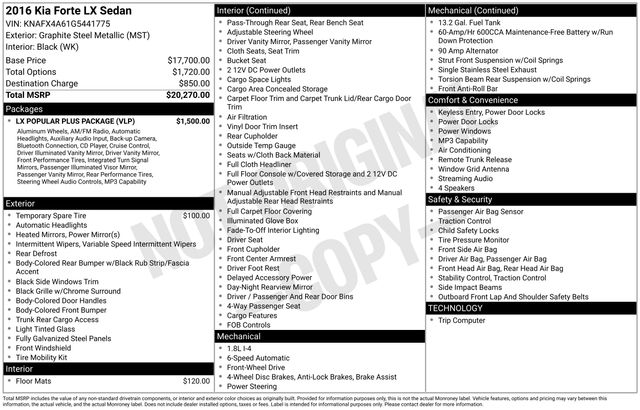 Discover the exceptional value and versatility of this 2016 Kia Forte LX. With its sleek silver exterior, efficient 1.8L I4 engine, and impressive fuel economy of 26 city/39 highway MPG, this Forte is the perfect companion for your daily commute or weekend adventures.