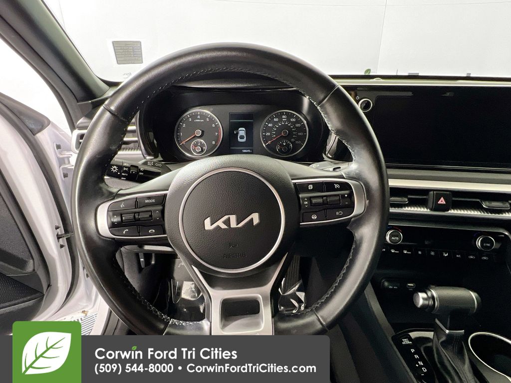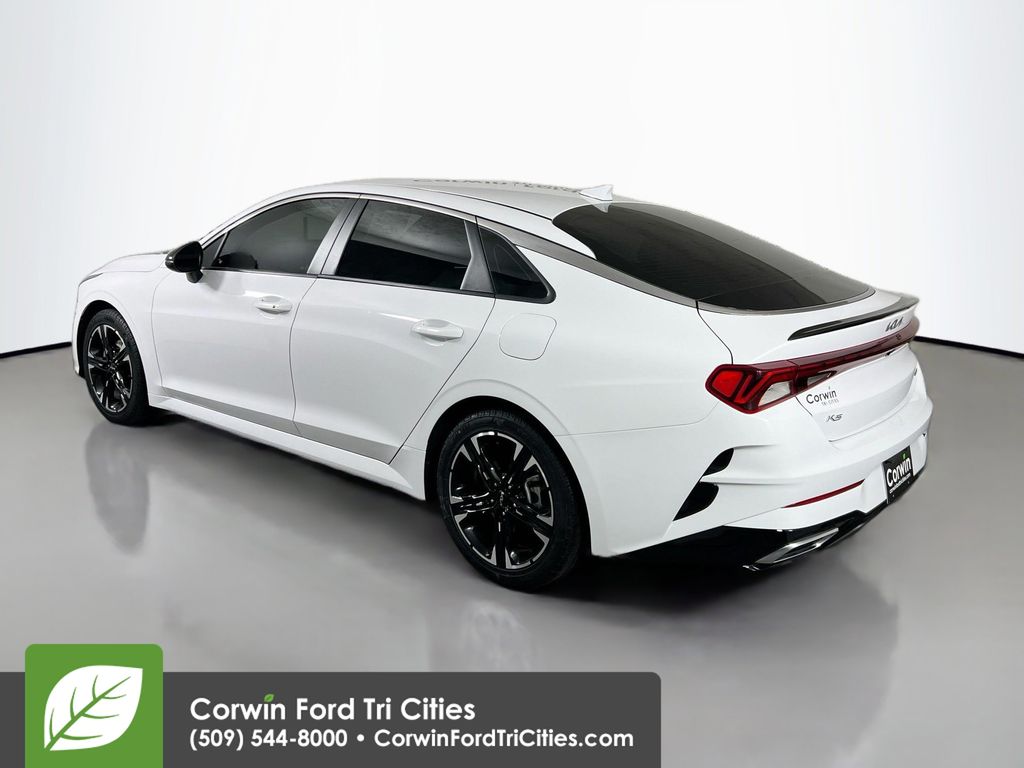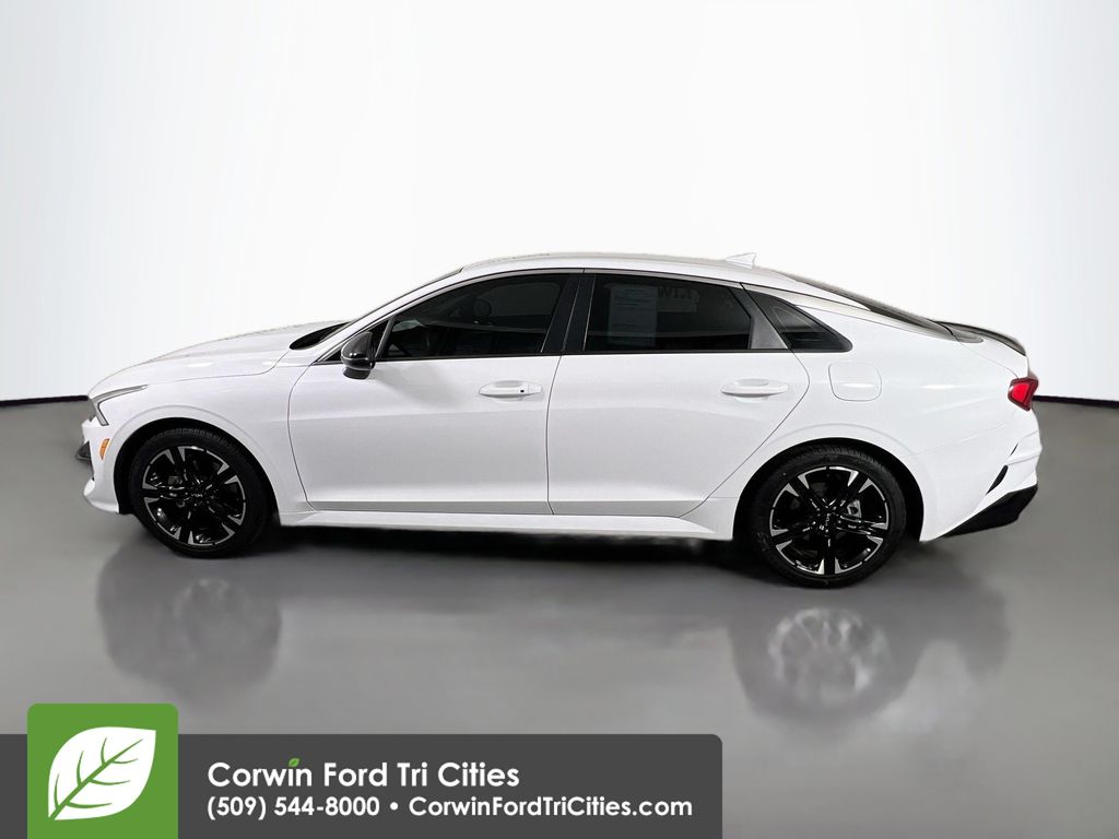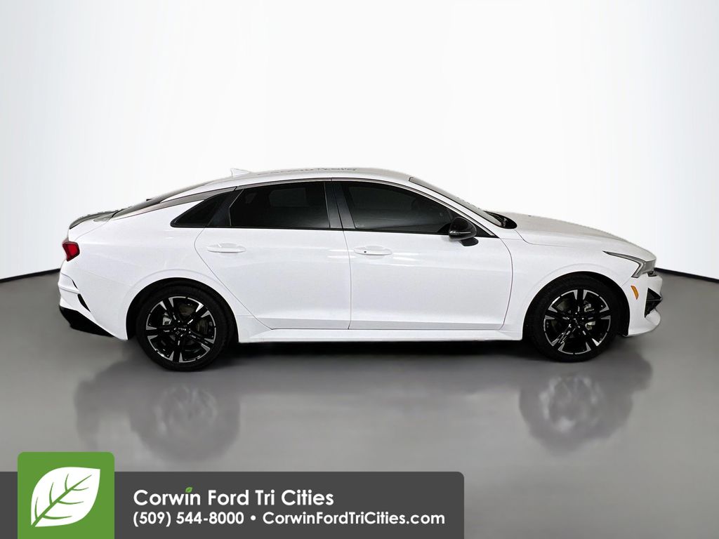 Smart and sporty, our 2022 Kia K5 GT-Line Sedan AWD in Glacial White Pearl will transform your driving experience for the better! Motivated by a TurboCharged 1.6 Liter 4 Cylinder supplying 180hp to an 8 Speed Automatic transmission. All Wheel Drive sedan combines spirited performance and impressive efficiency with that setup, seeing nearly 33mpg on the highway. You'll also love the stunning design of our K5 that combines exclusive GT body styling with LED lighting, fog lamps, heated power mirrors, a rear spoiler, a hands-free trunk, and stylish alloy wheels.