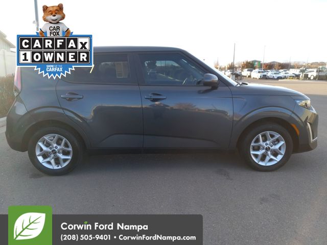 Our One Owner 2023 Kia Soul S is ready to ride in style with a bold Gravity Gray design and fantastic functionality! Powered by a 2.0 Liter 4 Cylinder providing 147hp paired to an intelligent CVT that encourages you to seek out the adventure in every day. This Front Wheel Drive SUV also responds to your needs with sporty handling, and it scores nearly 33mpg on the highway. Iconic styling is another highlight of our Soul, which turns heads with a bold black and silver grille, alloy wheels, and a convenient rear liftgate that opens wide for easy loading.