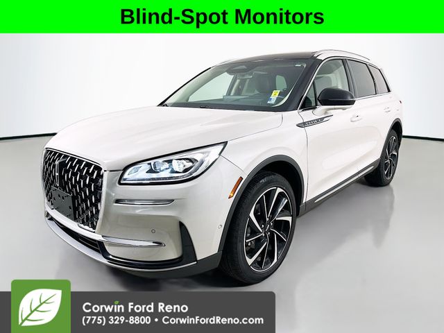 Recent Arrival! This Lincoln Corsair is well equipped and includes these key features and benefits, All Wheel Drive, Heated Seats, Blind-Spot Monitors, Touchscreen Controls, Backup Camera, Keyless Access with Push Button Start, Automatic Headlights, Apple CarPlay, Android Auto, Voice Recognition, 60/40 EasyFold Rear Seat w/Power Seatback Release, Adaptive Suspension, Auto Air Refresh (Ultra Fresh Cabin), Auto High-beam Headlights, Delay-off headlights, Equipment Group 202A, Frameless Auto Dimming Rearview Mirror, Hands-Free Liftgate, Head-Up Display, Heated Rear Seat, Heated Sideview Mirrors, Heated Steering Wheel, Heated/Ventilated Driver & Front Passenger Seats, Lincoln BlueCruise 1.2, Panoramic Vista Roof w/Power Shade, Phone As A Key (PAAK), Power Liftgate, Power Tilt/Telescoping Steering Column w/Memory, Radio: Revel Audio System w/HD Radio & MP3, Rain Sensing Wipers, Universal Garage Door Opener, Windshield Wiper De-Icer, Wireless Charging Pad. CARFAX One-Owner. Priced below KBB Fair Purchase Price! Available at Corwin Ford Reno located at 11111 South Virginia St.