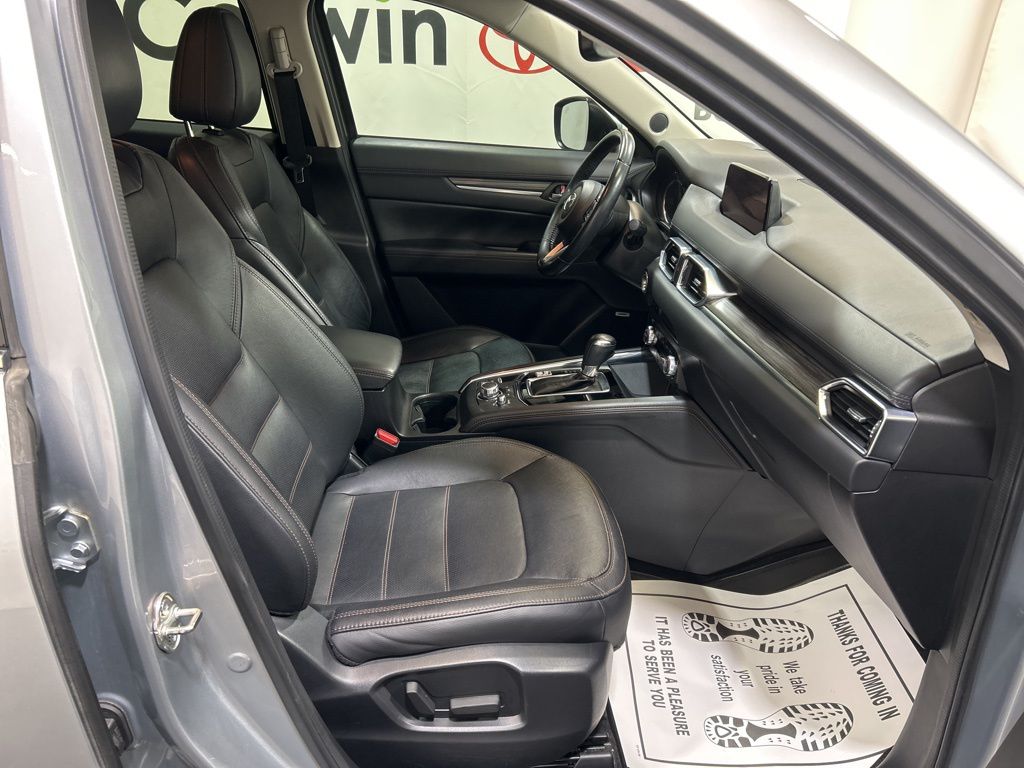 Indulge in the luxurious comfort of the heated front sport seats, wrapped in supple leather, and enjoy the convenience of the power liftgate and Mazda Mobile Start, which allows you to remotely start the engine from your smartphone. The CX-5 Grand Touring also boasts a comprehensive suite of advanced safety features, including Blind Spot Monitoring, Rear Cross-Traffic Alert, and Smart City Brake Support, providing you and your loved ones with the utmost peace of mind.