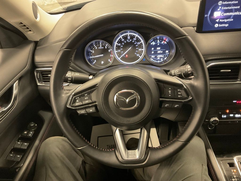 Step inside the CX-5 and be captivated by the refined and well-appointed interior. Sink into the heated leather-trimmed seats, which offer exceptional comfort and support, while the Bose premium audio system fills the cabin with rich, immersive sound. The intuitive Multifunction Commander Control and the auto-dimming rearview mirror further enhance the driving experience, ensuring you stay connected and in control.