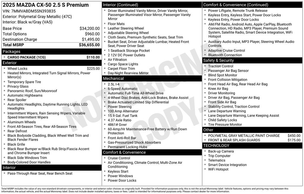 Meticulously equipped with a host of advanced features, this CX-50 is designed to elevate your daily commute and weekend adventures. Key highlights include: