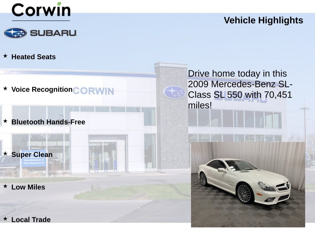 Elevate your driving experience and make this stunning 2009 Mercedes-Benz SL-Class SL 550 your own. Priced at just $21,498, this exceptional vehicle represents an incredible value. Visit our showroom today and let us demonstrate why this SL-Class is the perfect fit for your lifestyle.
