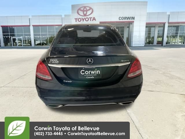 Our stunning, Accident Free 2015 Mercedes-Benz C 300 4MATIC® Sedan in Black helps you enjoy every drive with inspiring performance and everyday drivability. Motivated by a TurboCharged 2.0 Liter 4 Cylinder producing 241hp tethered to a 7 Speed Automatic transmission for rapid acceleration. This All Wheel Drive sedan provides nearly 31mpg on the highway, responsive handling, and a quiet, comfortable ride. You will also love its understated styling enhanced by chrome accents and lightweight alloy wheels.