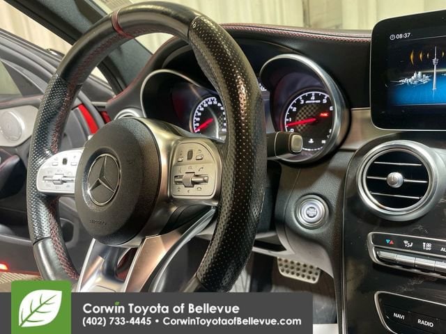 Offered with sensational designo Cardinal Red Metallic paintwork, our 2019 Mercedes-Benz AMG® C 43 4MATIC® Sedan will help you enjoy every drive. Powered by a Twin TurboCharged 3.0 Liter V6 generating 385hp coupled to a 9 Speed Automatic transmission to propel you to 60mph in 4.5 seconds. This All Wheel Drive sedan helps you attain up to 27mpg on the highway, and you will appreciate the superb driving experience highlighted by precise handling and a relaxing ride. You will also love its eye-catching styling enhanced by a power sunroof, LED headlamps, distinctive AMG® bumpers, side skirts, and black aftermarket wheels.