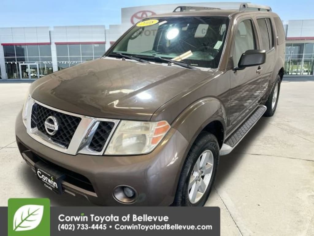 Discover excellence with our Accident Free 2008 Nissan Pathfinder LE 4X4 that's gorgeous Graphite! Powered by a 4.0 Liter V6 that offers 266hp on command paired with a 5 Speed Automatic transmission for seamless shifting. This Four Wheel Drive SUV gives you a sporty, rugged flair and nearly 22mpg on the road while accented by 17-inch wheels, fog lights, heated power mirrors, a roof rack, running boards, and a tow hitch receiver.