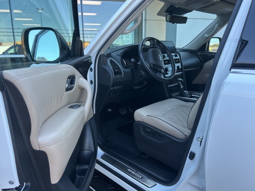 Recent Arrival! This Nissan Armada is well equipped and includes these key features and benefits, Collision Warning System, *Heated and Cooled Seats, Blind-Spot Monitors, Navigation System, LOCAL TRADE, **4x4**, 4WD, Automatic temperature control, Fully automatic headlights, Heated front seats, Heated rear seats, Heated steering wheel, Power Liftgate, Power moonroof, Rain sensing wipers, Remote keyless entry, Steering wheel memory, Steering wheel mounted audio controls, Ventilated front seats. CARFAX One-Owner.