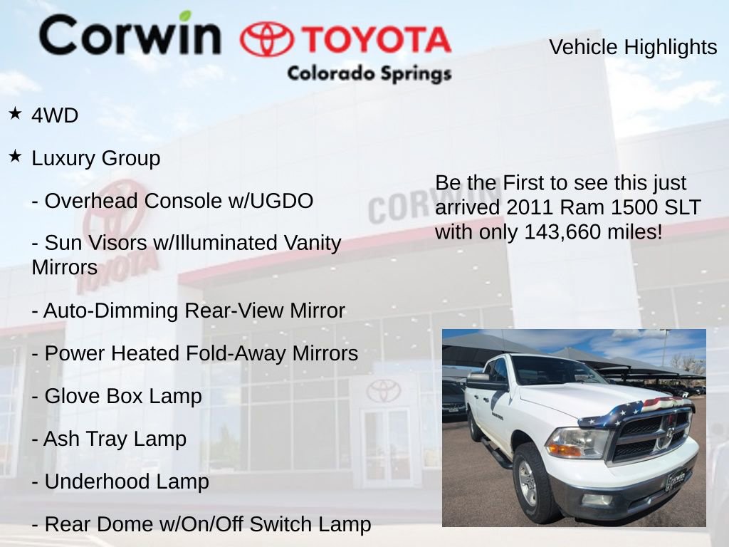 Whether you're hauling heavy loads or simply commuting in style, this 2011 Ram 1500 SLT is up to the task. Experience the confidence and versatility of this impressive truck for yourself. Visit our showroom today and let us demonstrate how this Ram 1500 can enhance your driving experience.